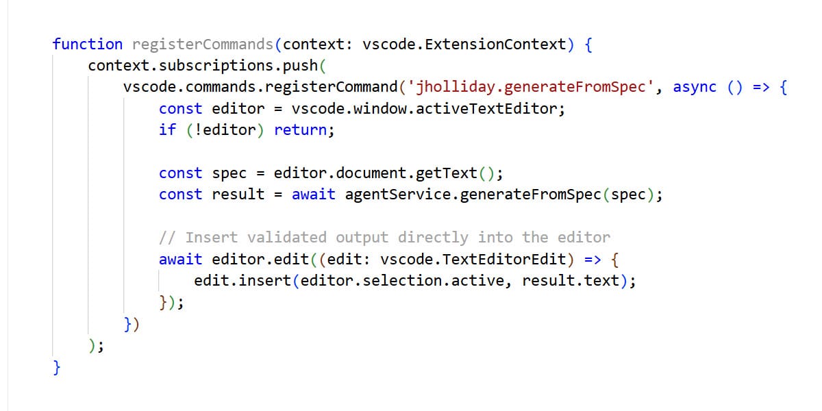 Registering an AI command in the VS Code extension.